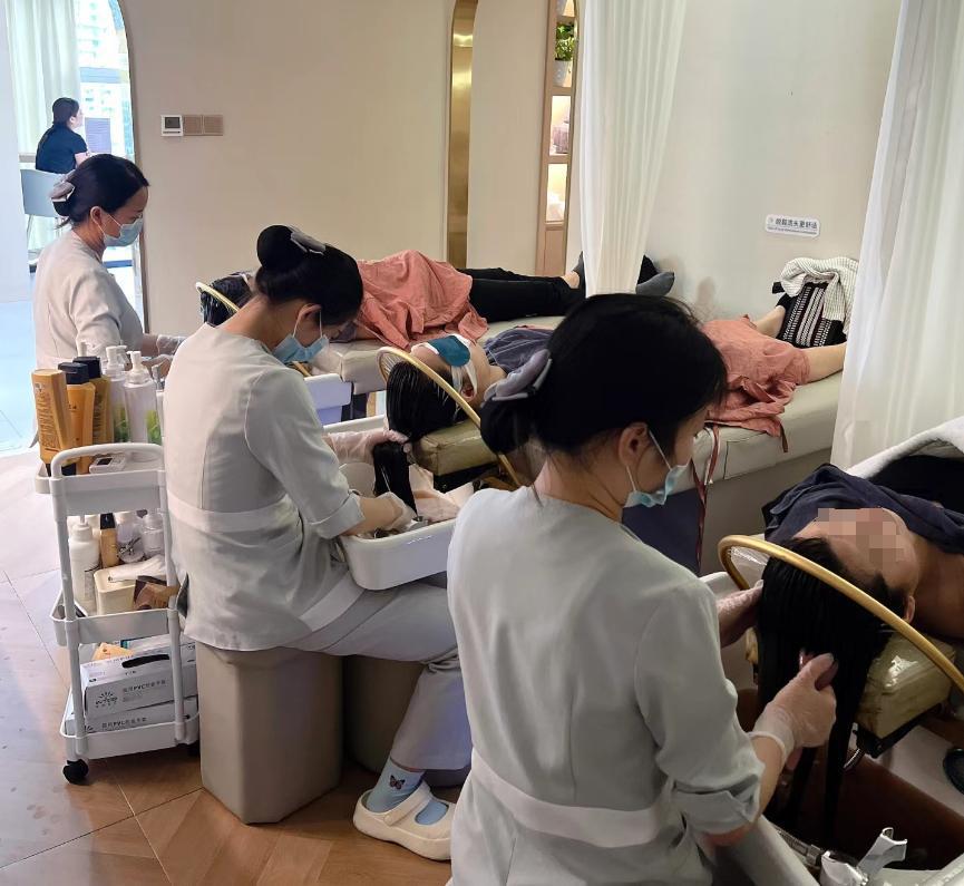 很多养发馆的技师在上岗前都会经过培训,通过专业的按摩手法刺激头皮不同部位,更好地促进血液循环,还能时不时开发点神奇功效。