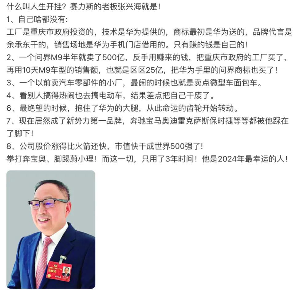 一鸣惊人之后,赛力斯创始人张兴海也引起人们的注意。