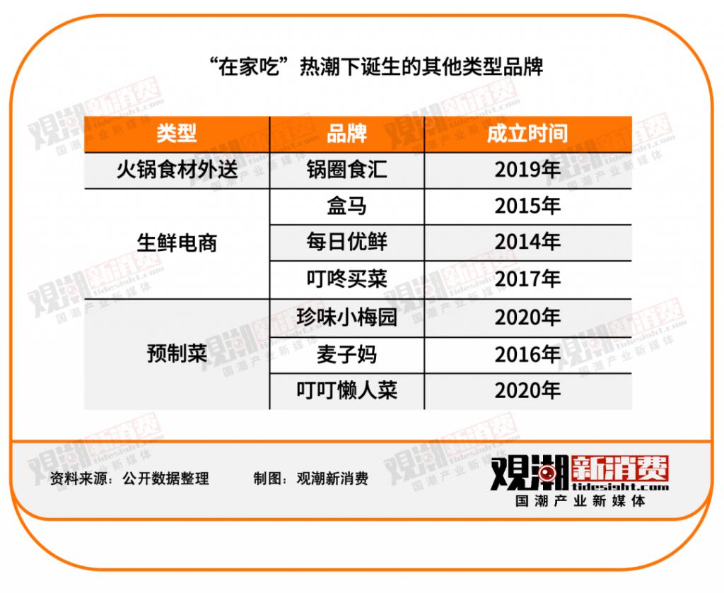 为了抢占消费者的餐桌,除了传统火锅品牌以外,一批火锅食材外送品牌、生鲜电商品牌,甚至预制菜品牌都在这一波热潮中诞生。