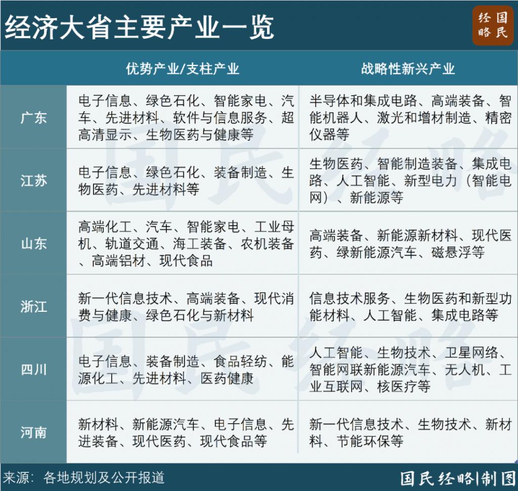 广东的电子信息、汽车制造,江苏的电子信息、石化产业,山东的重化产业,浙江的数字经济相关产业等等。