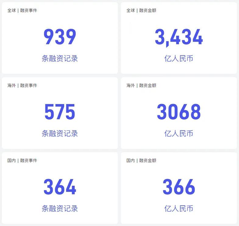 国内方面,AIGC 行业融资金额融资金额约为 366 亿人民币,累计发生投资事件 364 次。
