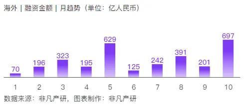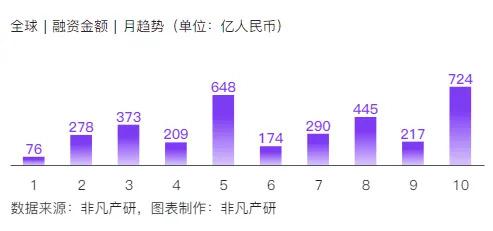 全球融资总额:达到 724 亿元,较 9 月上升 234%。