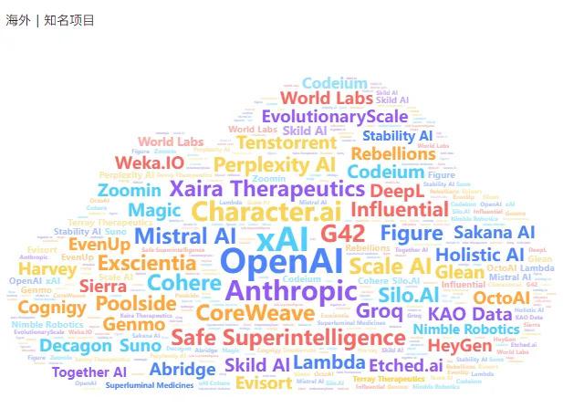 值得注意的是,有多家公司获得了超过 10 亿人民币的融资,如 G42、CoreWeave、Xaira Therapeutics、Cohere、Lambda、Skild Al、Tenstorrent、DeepL、Genmo 等。