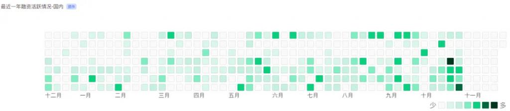平均来看,2024 年的月度的融资金额平均值 36.6 亿人民币,中位数 37.40 亿元。