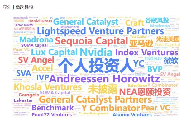 活跃投资机构:Andreessen Horowitz 完成 15 次投资,位列海外活跃投资机构榜首。