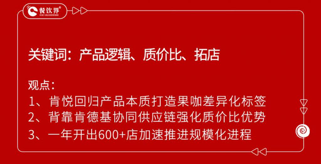 开店速度加快的背后,肯德基协同供应链为肯悦提供了 " 养料 ",肯德基超过万店的门店储备让肯悦实现了 " 选址自由 ",同时不得不强调的是,肯悦已然表现出来的出色产品力才是其持续进击的核心力量。