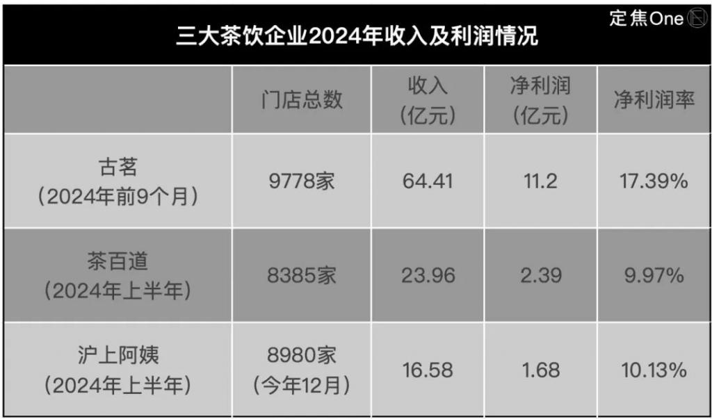好在,古茗的营收和利润双增长,且利润率高于茶百道和沪上阿姨。根据招股书,古茗 2024 年前三季度收入为 64.42 亿元,同比增长 15.08%;期内利润为 11.20 亿,同比增长 11.78%,同期净利润率超 17%。