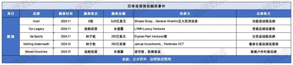 今年还有本土户外品牌 PELLIOT 伯希和、UPPERVOID 等获得融资,服饰领域的资金集中在运动户外赛道,竞争持续白热化。