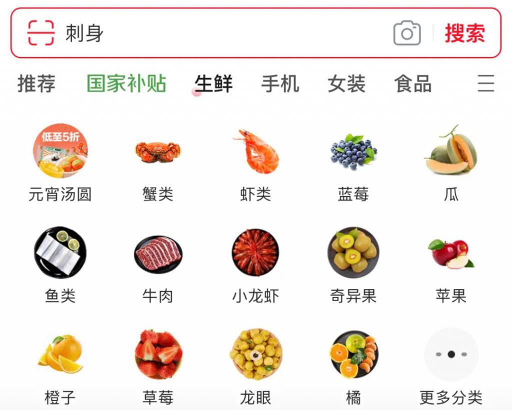 其次,京东 " 秒送 " 餐和饮更像噱头,重点则在 " 生鲜 "。