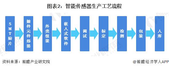 我国智能传感器的主要生产工艺流程包括 SMT 贴片、插件元件焊接、外壳组装、嵌入式软件、调试、标定、检测、包装、入库,具体工艺流程如下: