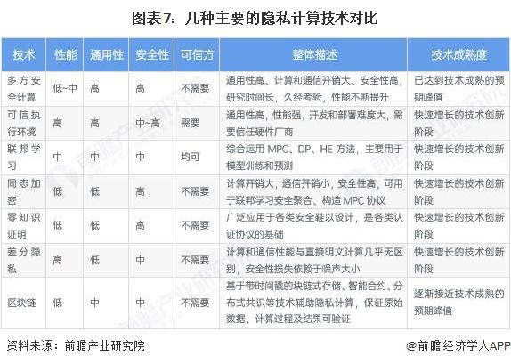 由于技术路径的不同,各类隐私计算技术均有其更加适用的场景,可满足不同的业务需求 ; 几种主要的隐私计算技术对比如下: