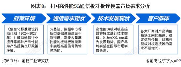 国内市场对高性能板对板连接器的需求日益增长。随着智能手机、平板电脑、物联网设备、无人机、安防通信设备以及车载通信设备的普及,电子产品集成度不断提升,这对通信板对板连接器的性能提出了更高要求。政策现状:政策的支持为通信板对板连接器等电子器件的发展创造了良好的政策环境。板对板连接器作为现代电子设备中不可或缺的核心组件,正随着设备小型化和高密度设计的需求而不断进步。通信需求:目前,5G 基础设施配套建设增速有所放缓,但随着 5G 应用的不断拓展,如 5G 手机、基站、数据中心等领域对高性能板对板连接器的需求依然稳定存在。技术发展:目前板对板连接器是通信领域更为灵活的解决方案,目前行业内掌握核心技术的企业较少。客户群体:市场上对高性能 5G 通信板对板连接器有需求的企业类型主要是通信设备制造商、智能手机厂商、物联网设备厂商、汽车电子企业以及安防和无人机厂商。