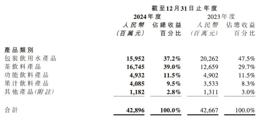 农夫山泉就是凭借即饮茶的发力,在遭受舆论冲击的 2024 年,全年业绩录得正向增长。