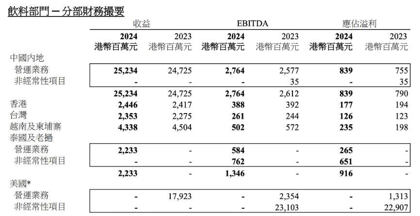 (太古可乐 2024 年业绩,销量下滑 1%)