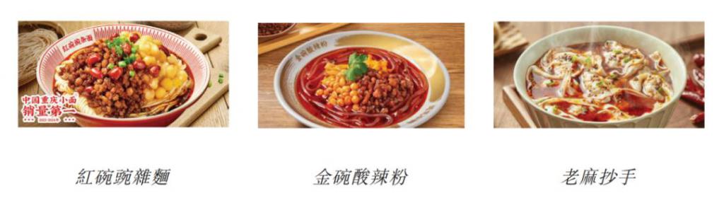 根据招股书,遇见小面每家门店的 SKU 大概在 30 至 40 个,包括我们熟知的重庆小面、金碗酸辣粉等主食,单价范围在 13 元到 35 元人民币之间。目前还拓展出了川渝特色小吃、烧烤、现炒浇头面等产品线。