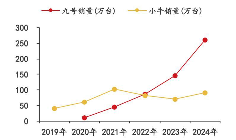 但颠覆这个看似已经格局已定的行业,搅局者是 " 门外汉 " 九号。根据公司 5 月最新披露数据,其智能两轮电动车在中国市场累计出货量突破 700 万台,在国内份额已经超过 10%。而这个成绩的取得是在九号的产品均价还高出一千元的前提下。