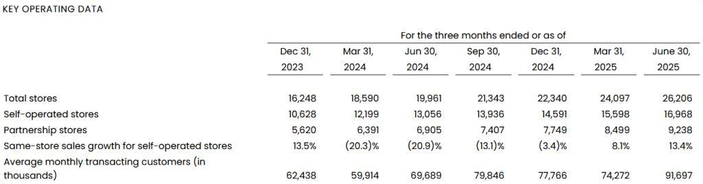 还值得注意的是,瑞幸咖啡 2025 年第二季度销售及市场推广费用为 5.925 亿元,较 2024 年同期的 4.326 亿元增长 37.0%。该增长主要由于广告及其他推广费用以及支付给第三方外卖及直播平台的佣金增加。