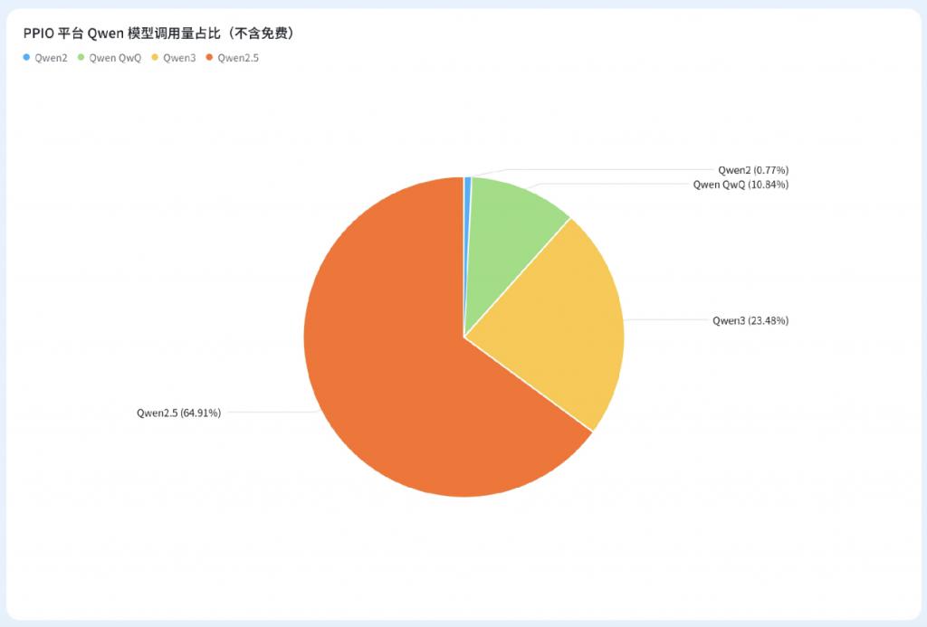 在 PPIO 平台的 Qwen 模型中,最受欢迎的是 Qwen2.5。PPIO 在 4 月下旬针对 Qwen2.5-7B-instruct 等模型开放限时免费活动,该系列模型的 tokens 消耗激增,整体消耗占 Qwen 系列整体的 90% 以上。即使在 Qwen3 发布后,Qwen 2.5 依然保持了强劲的用户需求。