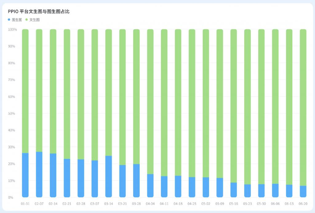 在生图领域,用户更喜欢使用文生图模型而非图生图模型。2025 年上半年,文生图模型的使用占比从 1 月份的 70% 增长到 6 月份的 90%。
