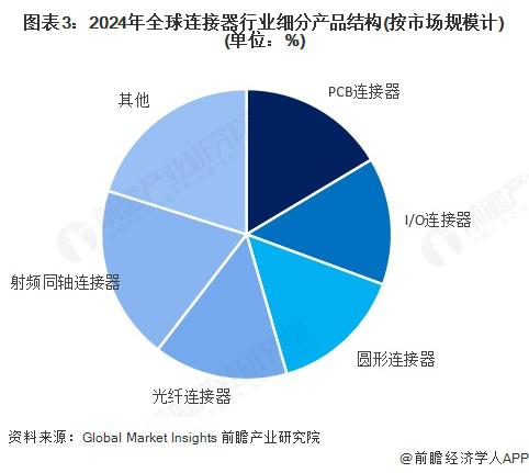 根据 Global Market Insights 公布的数据,按市场规模计,目前通讯行业是全球最大的连接器应用市场,占据着近 25% 全球连接器市场份额。